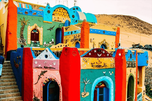 A trip by motorboat to the Nubian Viallage of Gharb Sohail, is a delightful way to experience the stunning scenery and rich culture of the Nile River region. The journey takes approximately 40 minutes to reach the Nubian village and passes through a landscape of lush palm groves, fertile agricultural land, and picturesque villages.