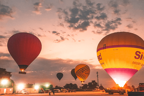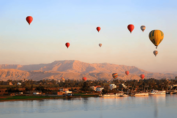 Hot air balloon rides in Luxor take place at sunrise. This is the best time to fly, as the air is calm and the views are spectacular.